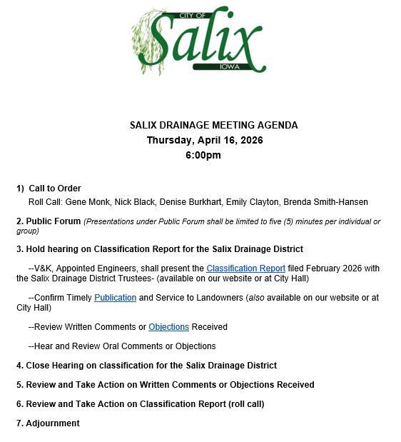 Welcome to City of Salix City of Salix… A Great Place to Live!